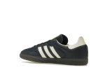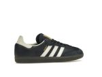 Crafted with premium materials, these Adidas Samba OG sneakers feature a supple leather upper enhanced by suede overlays for added texture and durability. The rich night navy blue colorway is accented by crisp cream white details around the collar, heel, and iconic three stripes, creating a sophisticated and versatile look. A subtle gold foil trefoil logo on the tongue adds a touch of refined branding.