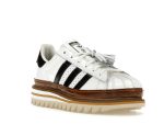 These aren’t your average Superstars. The upper boasts premium white patent leather, shimmering with sophistication. Contrast is provided by the sleek, black patent leather serrated 3-Stripes, a signature element elevated by subtle perforations reminiscent of broguing, adding a touch of refined elegance. Further enhancing the premium feel is a unique leather tassel adorning the laces.