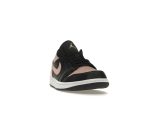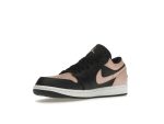 Crafted with premium materials, the Jordan 1 Low Crimson Tint features a mix of black and salmon pink leather inserts across the forefoot, eyelets, and mid-panel. The classic Jordan branding is prominently displayed, with the iconic Jumpman logo embroidered on the tongue, the signature Swoosh along the sides, and the Jordan Wings logo elegantly stitched on the heel. These details maintain the authenticity and heritage of the Jordan 1 lineage.