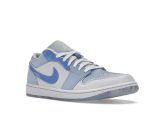 These stylish low-tops feature a striking blue and ghost white colorway. The shoe’s upper cleverly combines materials; supple leather accents the iconic Swoosh and heel, while lightweight synthetic materials form the rest of the upper, creating a comfortable and durable feel.