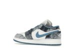 Step out in style with the Jordan 1 Low Washed Denim (GS) sneakers, a fresh take on a classic design perfect for young sneakerheads. These grade school sized shoes boast a unique washed denim upper, blending shades of blue and white for a cool, casual look.