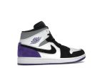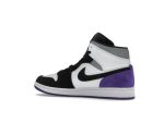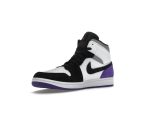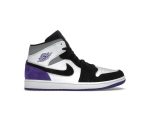 Step into style with the Jordan 1 Mid SE Purple, a vibrant addition to the iconic Jordan 1 lineage. Released in November 2020, this sneaker boasts a striking color scheme that effortlessly blends classic and contemporary aesthetics. The crisp white leather base provides a clean foundation, beautifully contrasted by black overlays on the forefoot and a rich varsity purple heel overlay.