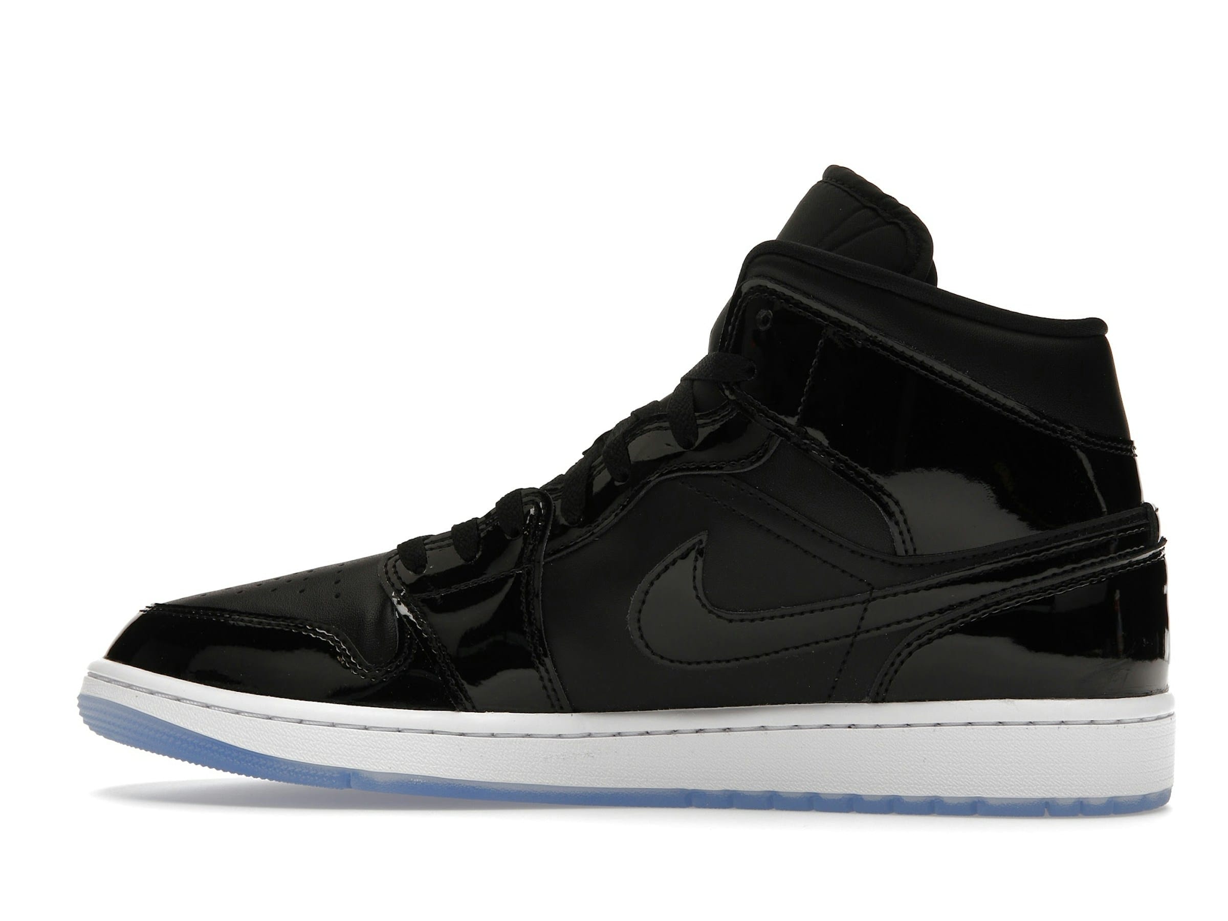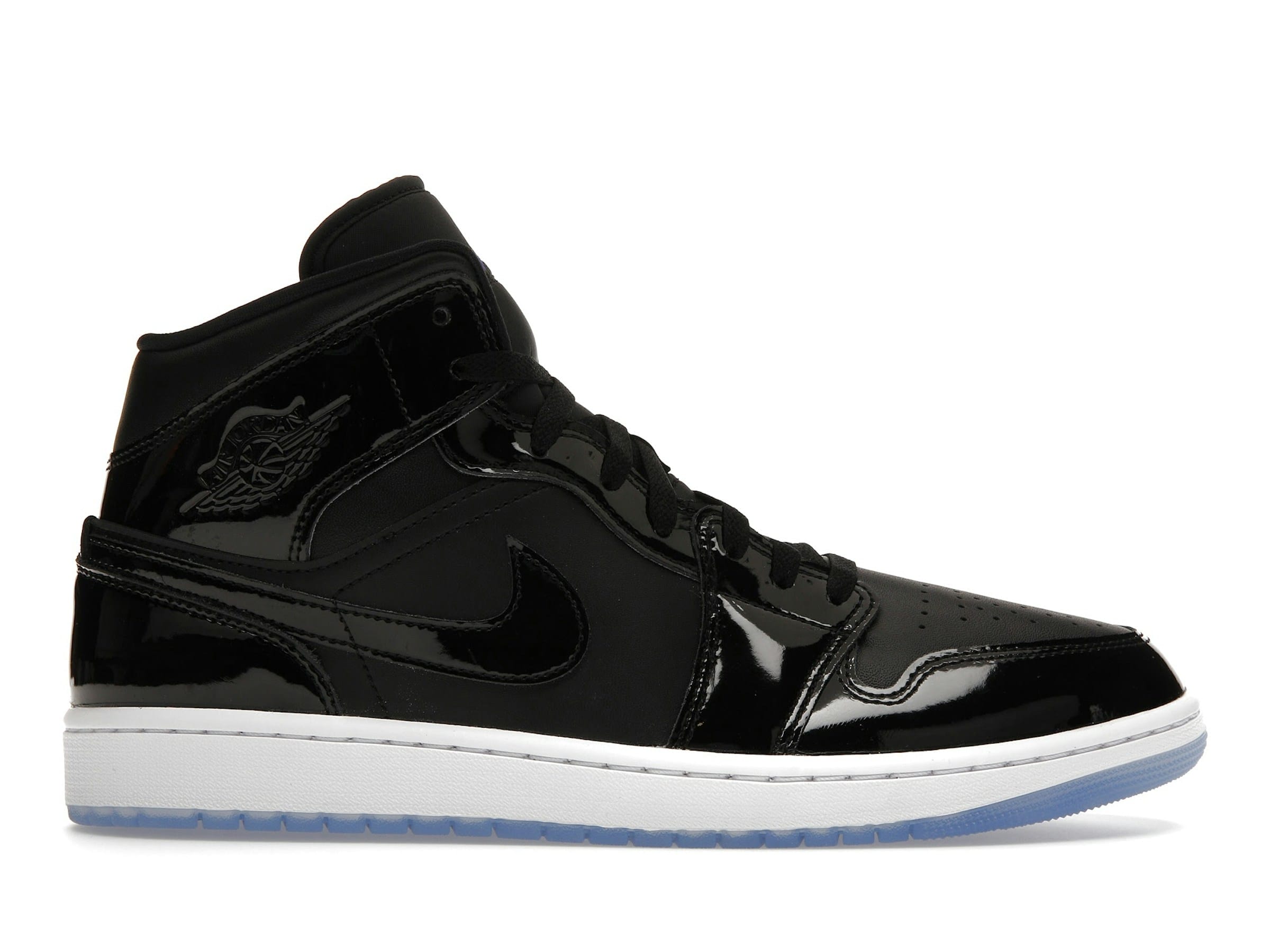 Featuring key design elements inspired by the Jordan 11 Retro Space Jam, these sneakers boast black patent leather uppers for a premium look and feel. The icy blue translucent outsole adds a striking contrast and a modern touch, echoing the iconic details of the original Space Jam design.