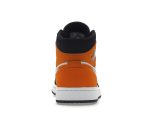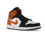 The Jordan 1 Mid Shattered Backboard boasts a striking Black/White-Starfish colorway, a tribute to the original event. The classic Jordan 1 silhouette is instantly recognizable, updated with this limited edition design. The iconic “Jordan” branding is prominently featured, while an eye-catching orange Swoosh provides a vibrant contrast against the crisp white sections of the shoe.