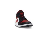 Paying homage to the beloved Jordan 1 Bred Toe, this iteration features striking red accents. These vibrant pops of red appear on the collar, tongue, perforated toe box, and Swoosh logos, adding a dynamic touch. The black overlays extend to the insole, lining, and laces, creating a cohesive and stylish aesthetic. A black rubber outsole provides durable traction, while the signature Jumpman logo on the tongue and a winged logo on the collar complete the design.
