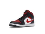 Step into iconic style with the Jordan 1 Mid White Black Red 2022 (554724-079). This classic sneaker, released on June 1st, 2022, offers a fresh take on a timeless design. The shoe’s clean white leather upper provides a crisp base, perfectly complemented by bold black overlays that add depth and contrast.