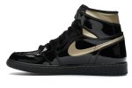 Experience the iconic Jordan 1 Retro High OG in a luxurious Black and Metallic Gold colorway. This 2020 release, a reimagining of a classic, features the premium patent leather upper that Jordan Brand is known for, a design element first popularized by the Jordan 11.