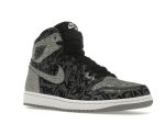 The shoe’s upper boasts a simple yet sophisticated black and grey color-blocked design. Adding a unique element, graffiti-style text is printed directly onto the premium leather construction, giving the sneaker a rebellious and artistic edge. The comfortable and supportive fit you expect from an Jordan 1 is maintained throughout.