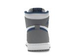 Crafted from premium smooth leather, the shoe features a clean white base that provides a striking contrast to the bold True Blue accents. The iconic Swoosh, Wings logo, tongue tag, and laces are all dressed in the signature True Blue hue. Cement grey overlays add a subtle yet sophisticated touch, complementing the overall design.