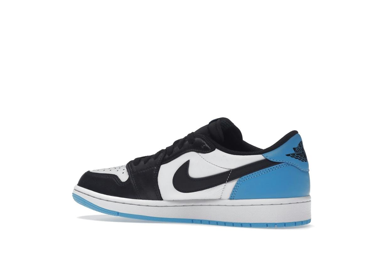 Experience the iconic Jordan 1 Retro Low OG in a stunning Black and Dark Powder Blue colorway (CZ0790-104). This fresh take on a classic silhouette combines a crisp white leather upper with bold black overlays, creating a striking contrast. The signature Jordan details are impeccably executed, showcasing the brand’s commitment to quality and design.