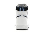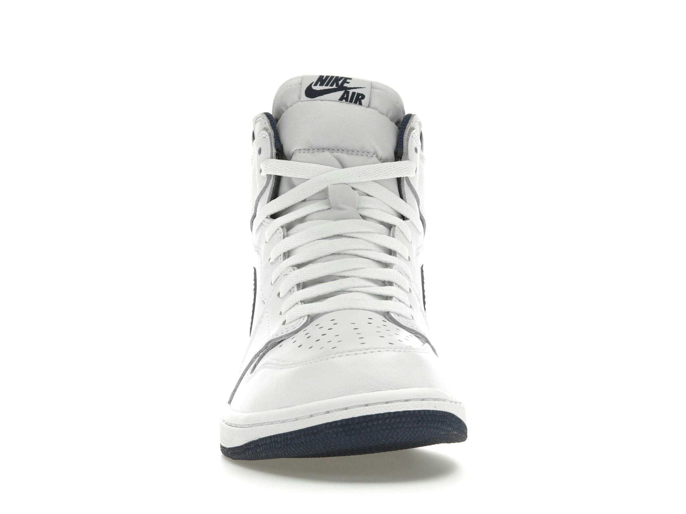 Experience the timeless style of the Jordan 1 Retro Metallic Navy (2016). This iconic sneaker boasts a sophisticated color scheme, combining crisp white leather with accents of metallic navy. The buttery smooth white leather upper features a perforated toe box for breathability, ensuring comfort throughout the day. Nike Air technology provides excellent cushioning, offering superior impact protection.