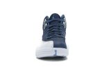 The Jordan 12 Indigo boasts a striking resemblance to the popular 2012 Obsidian retro, but with a unique twist. Instead of the typical tumbled leather, these Jordans feature smooth grain leather in a sophisticated Stone Blue hue. Accents of crisp white on the toebox and midsole provide a clean contrast, perfectly complementing the deep blue upper. The iconic Jumpman logo makes its mark, both subtly embroidered on the tongue and prominently stamped on the outsole.
