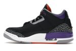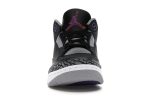 Experience the legendary Jordan 3 Retro Black Court Purple, a sneaker steeped in history and brimming with style. Originally conceived with a Phoenix Suns colorway, this iteration boasts a captivating blend of black leather, iconic cement gray elephant print, and striking court purple accents. The unexpected journey from canceled release to global launch adds to its allure.