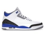 The vibrant Racer Blue accents on the Jumpman logos and midsole provide a striking contrast, adding a modern twist to the original design. These details elevate the shoe, making it a must-have for any sneakerhead. Originally released in July 2021, the Jordan 3 Racer Blue remains a highly sought-after collectible.