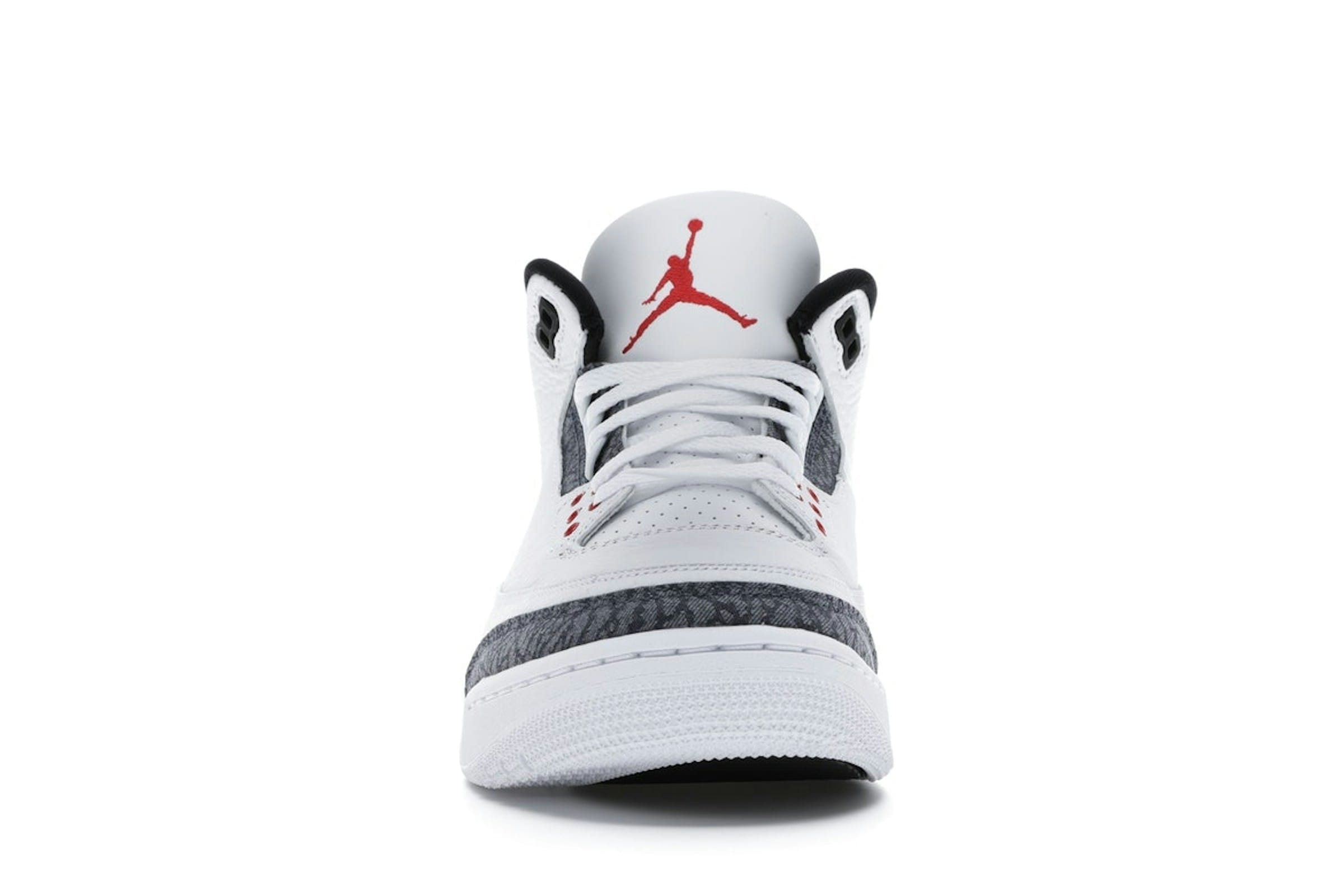 Experience the unexpected fusion of denim and the Jordan 3’s signature elephant print. Instead of the traditional nubuck, this model features a denim-based elephant print, adding a unique texture and modern twist to this legendary silhouette. Accents of Fire Red on the Jumpman logo and ankle further enhance its vibrant aesthetic.