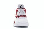 A key feature is the inclusion of a red net patch on the toe box and side panels, adding a unique textural element to the design. The clean white laces and visible AIR unit in the sole provide a comfortable and supportive base. This Jordan 4 model perfectly blends classic style with modern comfort.