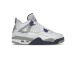 The Jordan 4 Retro Midnight Navy GS features classic Jordan 4 design elements, including the iconic Wings branding, Jumpman logo, and visible Air cushioning. The color blocking and material choices create a shoe that’s both stylish and comfortable, suitable for everyday wear or special occasions.