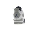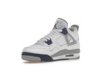 Experience the timeless style of the Jordan 4 Retro Midnight Navy GS (408452-140). This grade school version of the iconic sneaker features a clean white leather upper, accented by a striking midnight navy color scheme. The light smoke grey details on the Wings and heel tab add subtle contrast, while the fire red pops provide a vibrant touch.