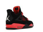 Experience the iconic Jordan 4 Retro Red Thunder trainers, a striking update on a classic design. These coveted sneakers boast a captivating blend of black and vibrant red, creating a truly unforgettable look. The all-black Durabuck upper provides a sleek foundation, complemented by eye-catching red netted underlays and eyelets, adding depth and texture.