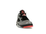 Key features include a reflective silver upper, black and red accents, a translucent outsole, Air midsole cushioning, and unique Neymar and Jumpman branding. This Jordan 5 Low boasts a refined silver and black colorway with pops of red for a truly memorable sneaker.
