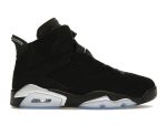 Experience the sleek sophistication of the Jordan 6 Retro Chrome (DX2836-001). This iconic sneaker boasts a striking black and metallic silver colorway, a design that seamlessly blends classic Jordan style with modern flair.