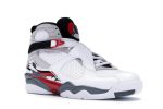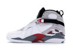 This Jordan 8 boasts a predominantly white upper crafted from premium full-grain leather, providing both durability and a luxurious feel. The crisp white extends to the midsole and outsole, creating a clean and sophisticated foundation for the vibrant accents.