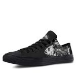 Dive into the urban jungle with our Crazy Fish Bone Black Lowtop Sneakers, where edgy design meets everyday comfort. These sneakers are crafted to stand out with their unique fish bone-inspired patterns, setting a bold tone in classic black. The durable canvas upper ensures your feet stay cool and comfortable, while the cushioned insole offers support for all-day wear. A robust rubber outsole provides excellent traction and longevity, making these sneakers a reliable choice for any urban adventure.