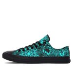 The durable rubber outsole provides excellent traction and longevity, making these sneakers a reliable choice for any activity. Whether you’re exploring the city streets or meeting up with friends, the Cyan Neon Mandala Pattern Skull Black Lowtop Sneakers offer a perfect mix of style and practicality.