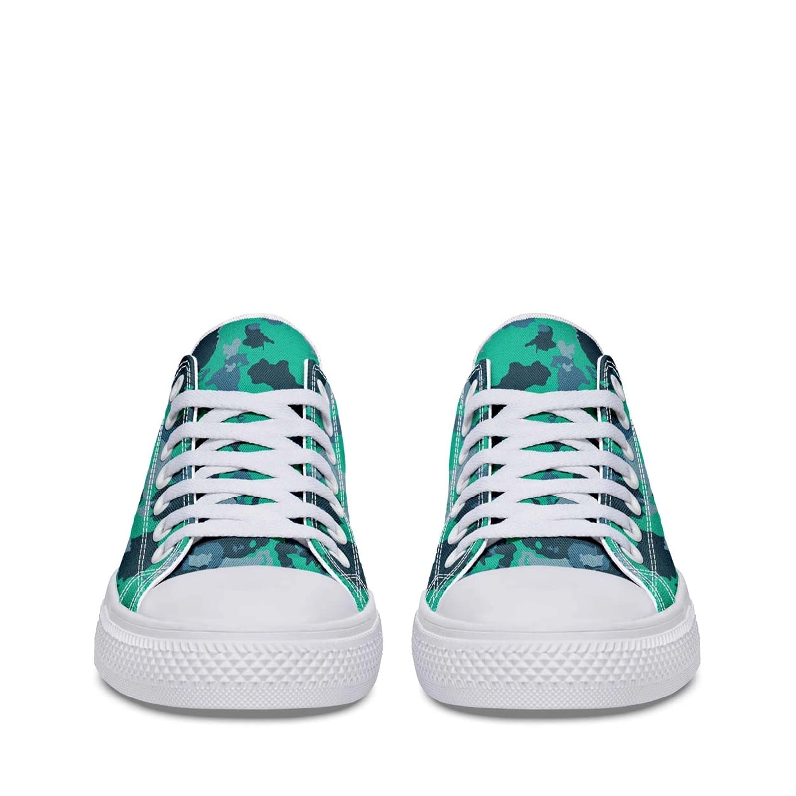 Embrace a military-inspired aesthetic with our Green Urban Camo Pattern White Lowtop Sneakers. Featuring a classic white canvas upper, these sneakers are enhanced with a subtle green camouflage pattern, offering a fresh twist on traditional camo. The combination of style, comfort, and durability makes them perfect for everyday wear, whether you’re going for a laid-back look or adding an urban edge to your outfit.