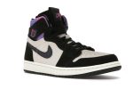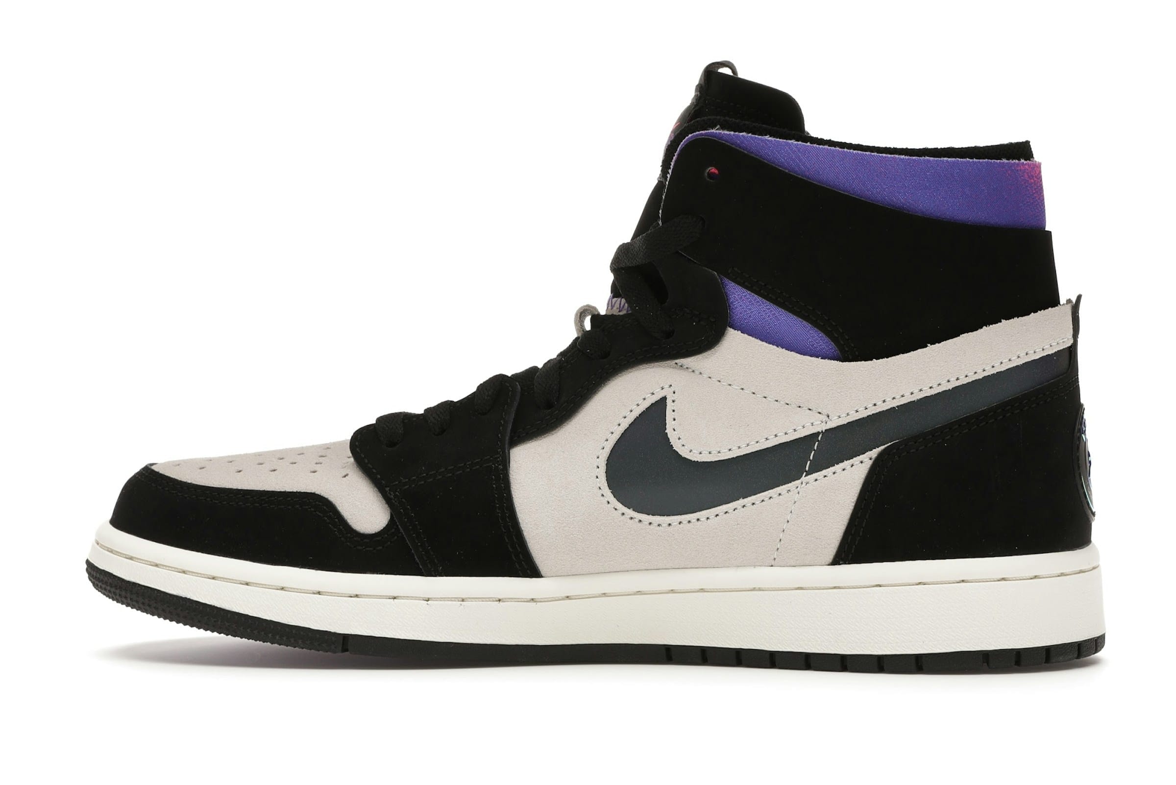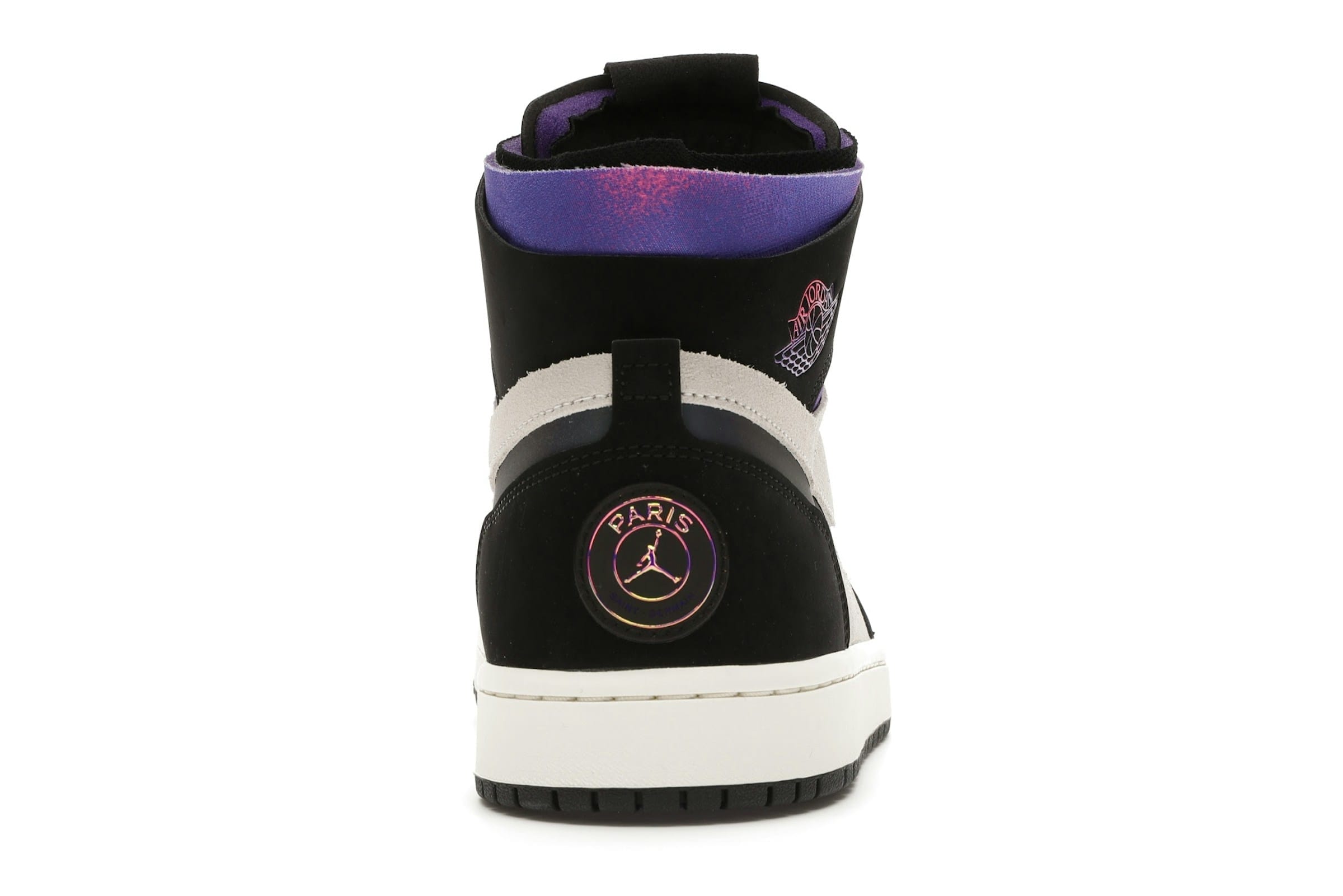The design is completed with a clean white midsole and a black outsole, maintaining the traditional Jordan 1 aesthetic while incorporating the distinct details of this special edition. The Jordan 1 Zoom Air CMFT PSG is a testament to the successful partnership between Jordan Brand and Paris Saint-Germain, combining iconic sportswear design with luxurious materials and details.