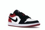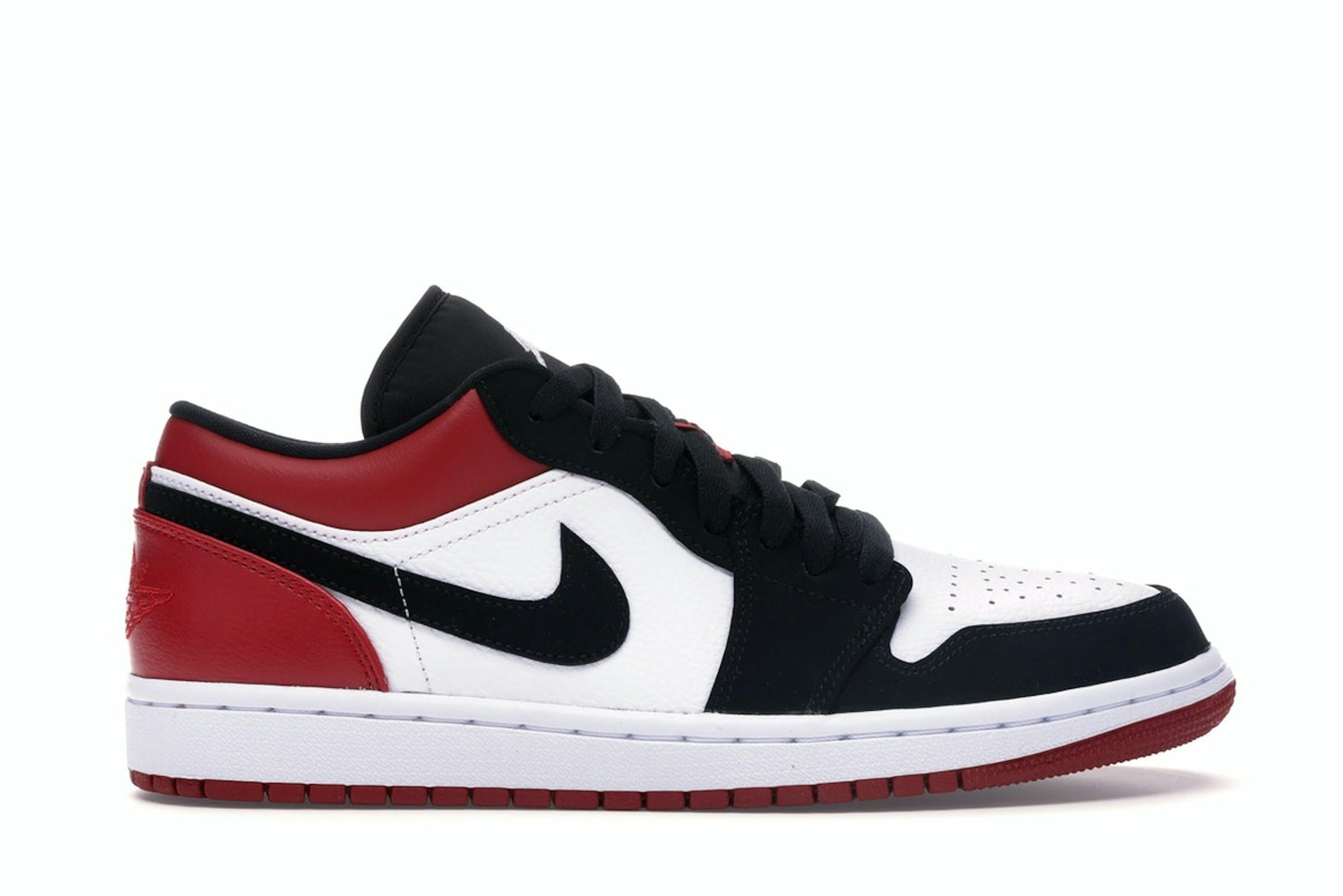 Step into style with the iconic Jordan 1 Low Black Toe (2019). This classic sneaker boasts a clean white leather upper, accented by the signature black and Gym Red details. The instantly recognizable black Nike Swoosh adds a sharp contrast, while the crisp white midsole and vibrant red outsole complete the look.