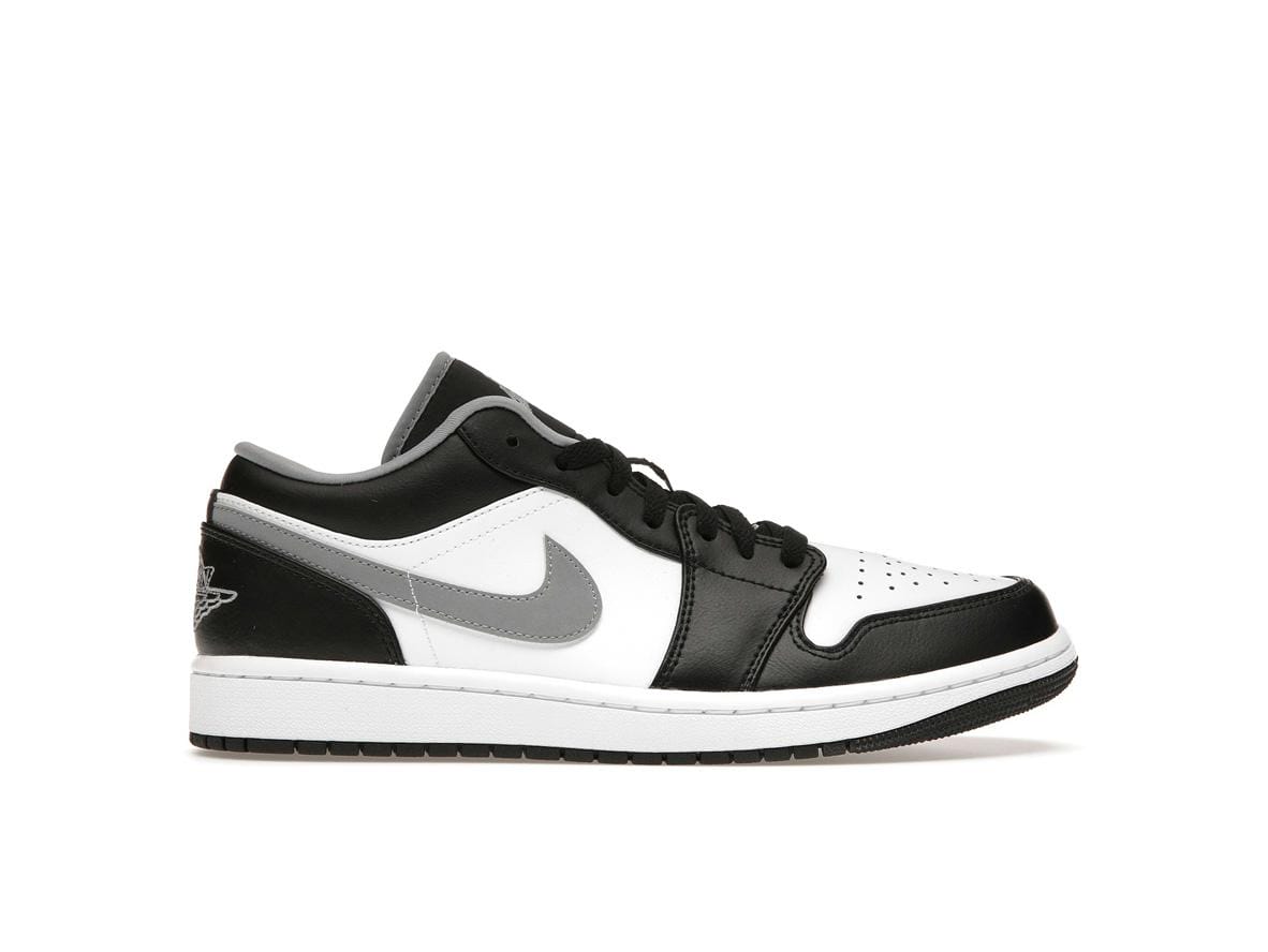 Classic Jordan 1 Low Black White Grey sneakers. Premium leather, comfortable low-top design. Features iconic Jumpman & Wings logos. MPN: 553558-040. Brand: Jordan. Perfect everyday style.