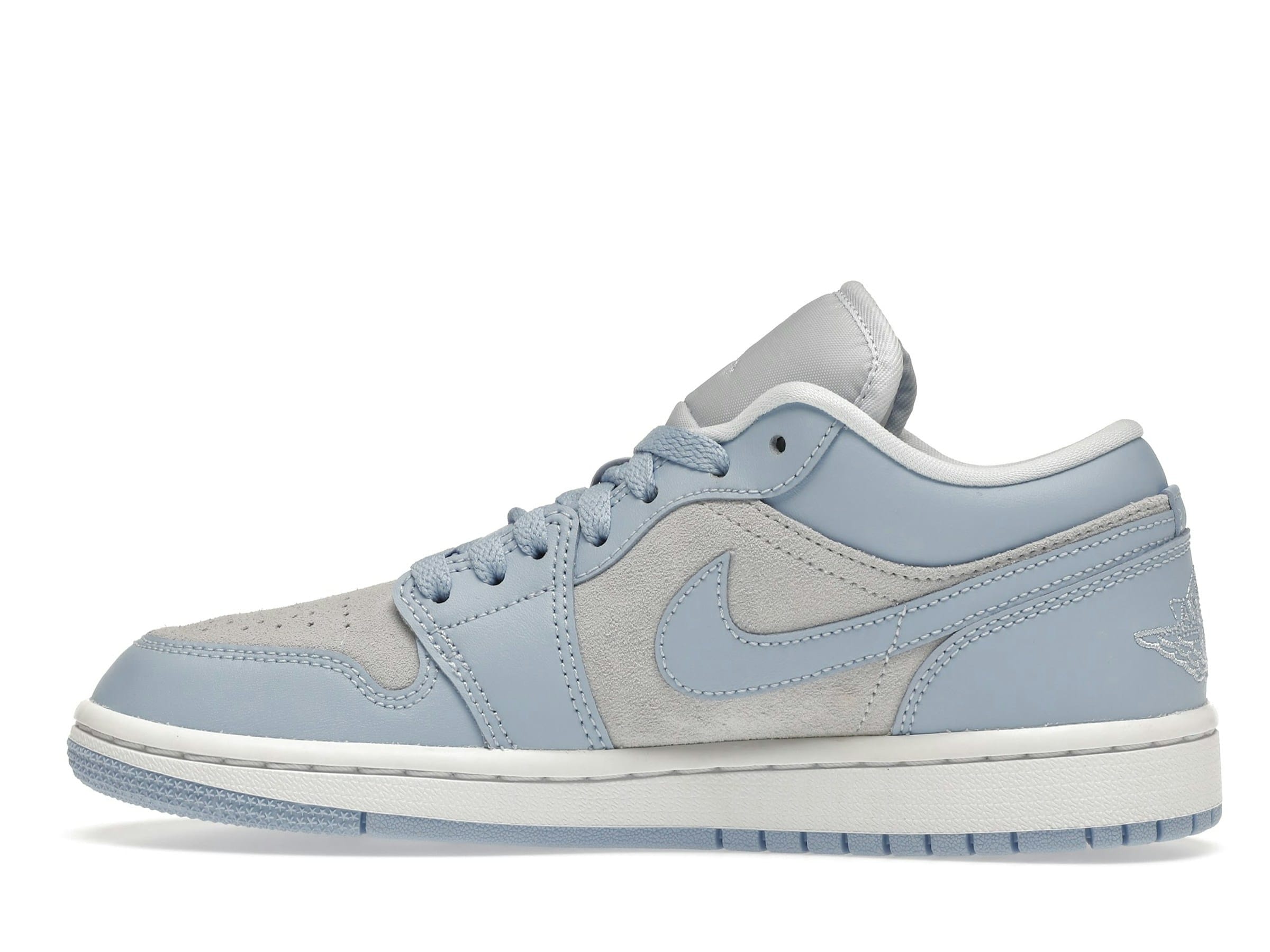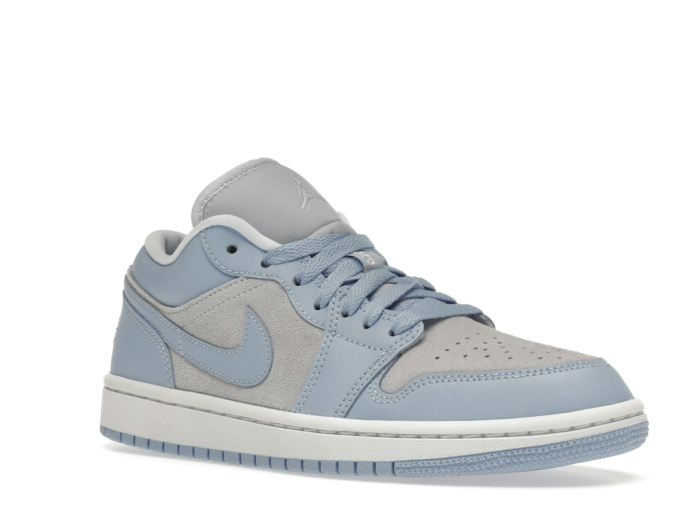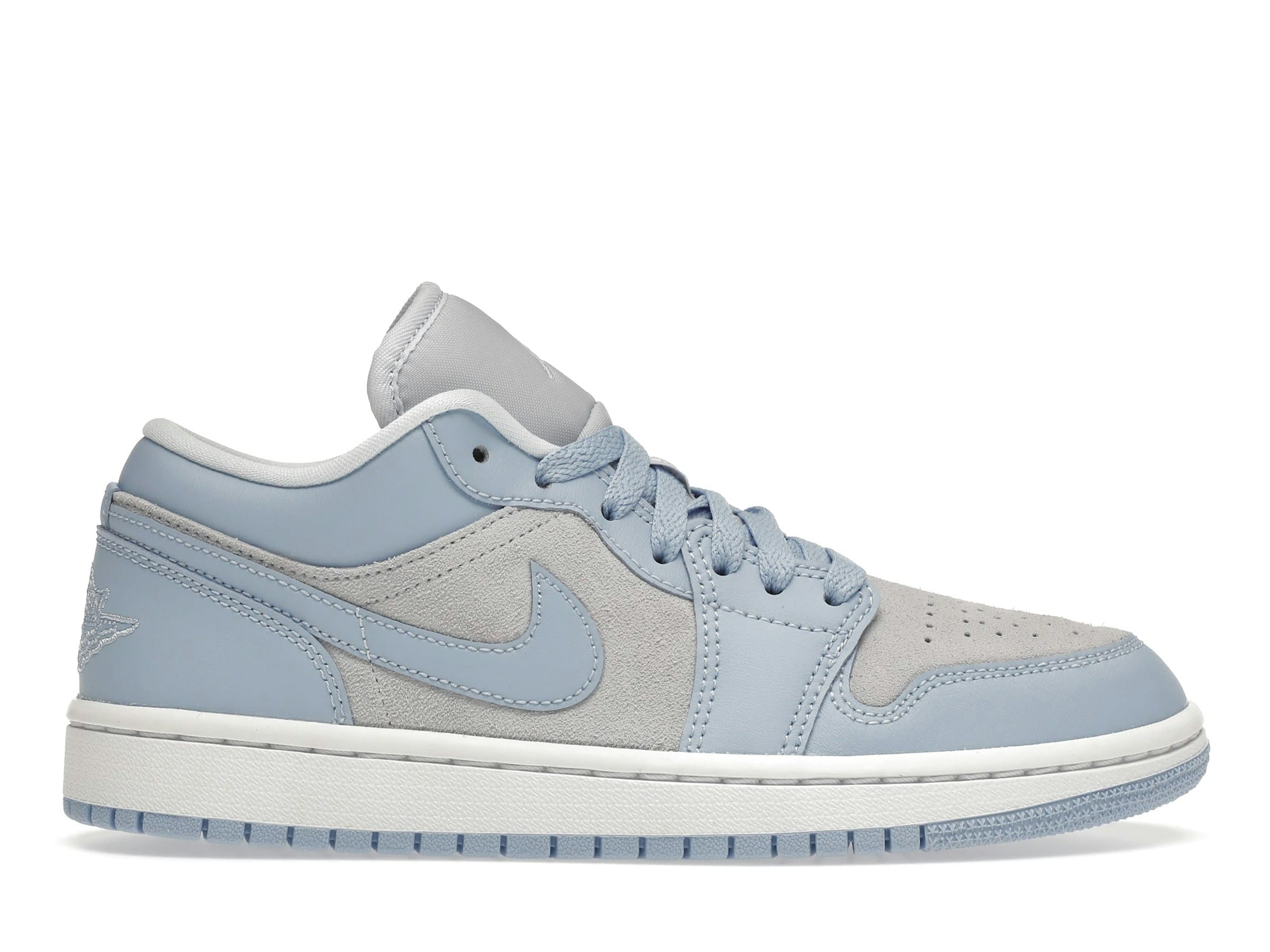 Featuring a clean and sophisticated palette, this Jordan 1 Low boasts a combination of Football Grey, White, and Aluminum. The predominantly white sole provides a crisp contrast to the grey panels, while the Nike swoosh adds a signature touch of style. This versatile color scheme makes it easy to pair with a variety of outfits.