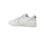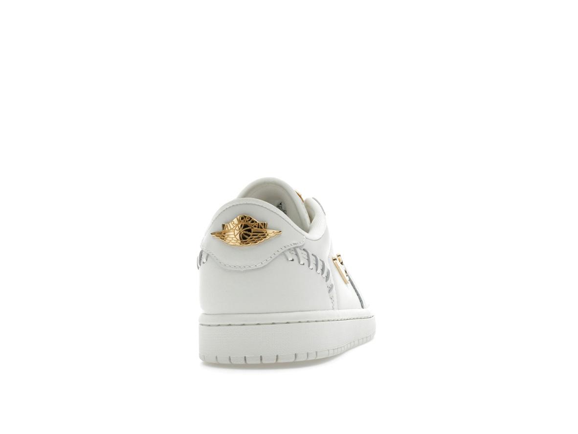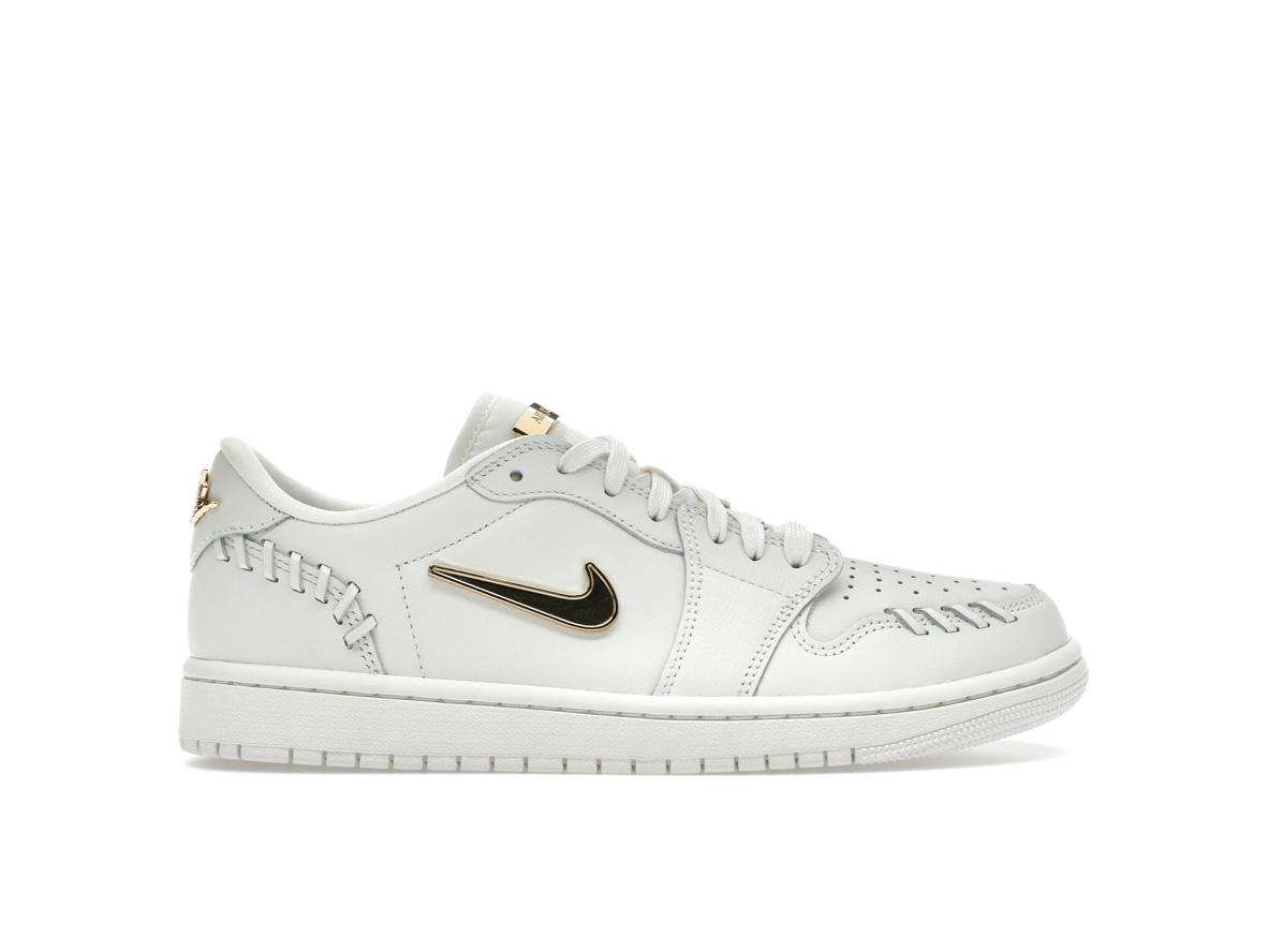 Step into style with the Jordan 1 Low Method of Make Sail Metallic Gold Women’s shoe. This stunning sneaker boasts a clean and sophisticated design, perfect for elevating any outfit. The crisp sail upper provides a versatile base, beautifully complemented by the luxurious metallic gold accents. These accents add a touch of high-end flair, making these Jordans a statement piece for the modern woman.