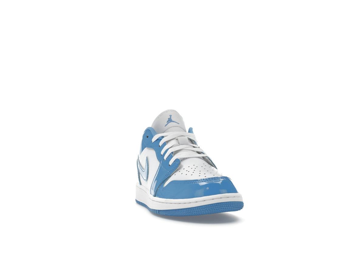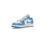 Designed for kids and younger sneakerheads (GS sizing), these Jordan 1 Lows offer the same quality and craftsmanship as their adult counterparts. The crisp white base provides a striking contrast to the bold blue accents, creating a visually stunning shoe that’s sure to turn heads. This eye-catching color scheme makes them ideal for any outfit, adding a pop of color to casual wear or elevating a more dressed-up look.