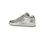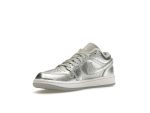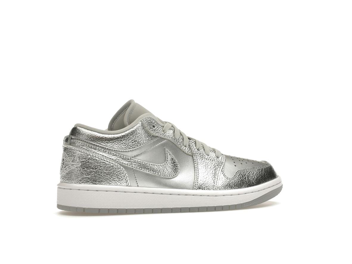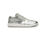 True to the Jordan brand’s legacy, the shoe features an embroidered Jordan Wings logo on the heel and a Jumpman logo on the tongue, showcasing authentic Jordan branding. The semi-translucent rubber outsole provides a unique visual element, giving the impression that the shoe floats effortlessly. Originally released on April 1, 2024, these Jordan 1 Low SE Metallic Silver sneakers are a must-have for those seeking a blend of classic style and modern flair.