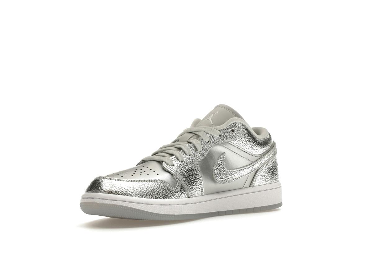 These women’s Jordan 1 Low SE Metallic Silver sneakers (FN5030-001) offer a perfect fusion of comfort and high-fashion design. The Metallic Silver and Wolf Gray colorway is both versatile and striking, making them suitable for a range of outfits and occasions. Experience the iconic Jordan quality and style with this exceptional sneaker.