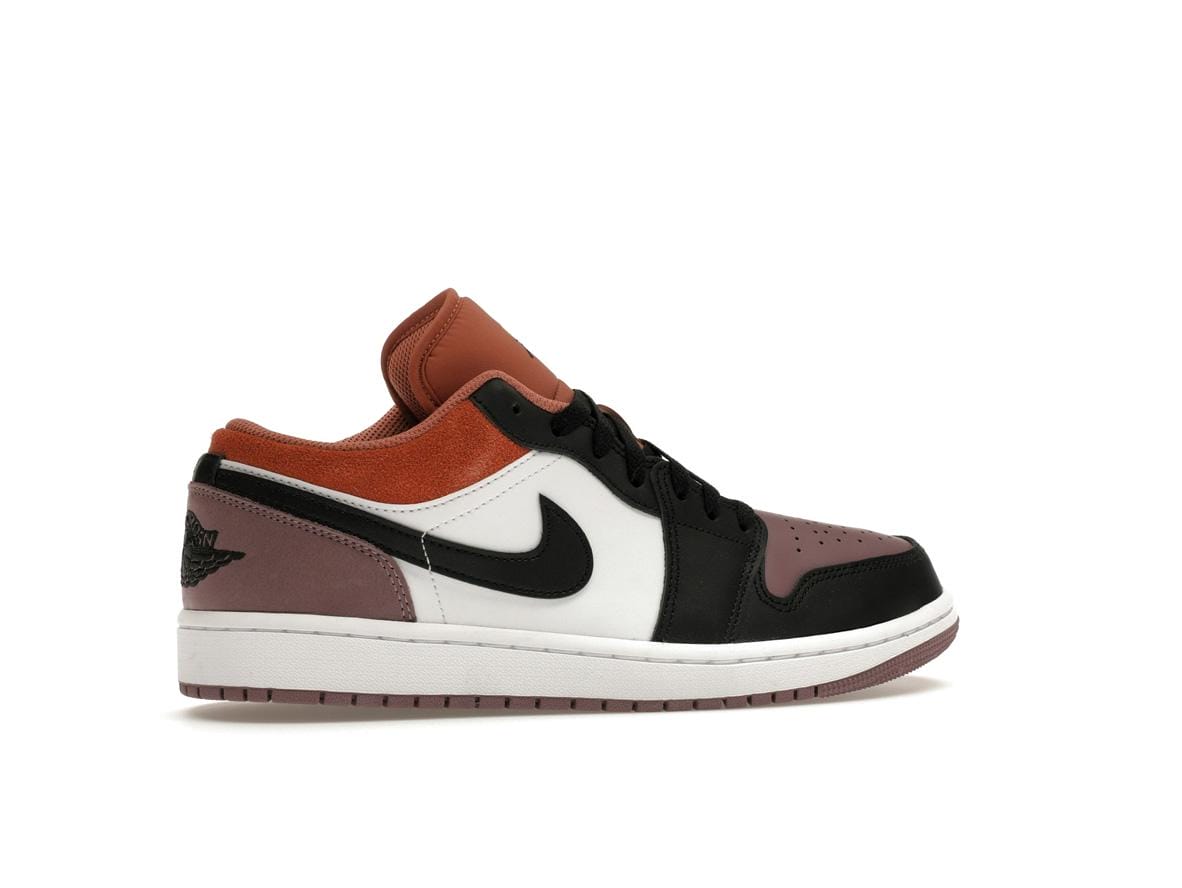 Jordan 1 Low SE Sky J Mauve (FB9907-102). White/Black/Sky J Orange/Sky J Mauve colorway. Premium leather, comfortable fit. Iconic Jordan Wings & Jumpman logo. Released 11/23/2023.