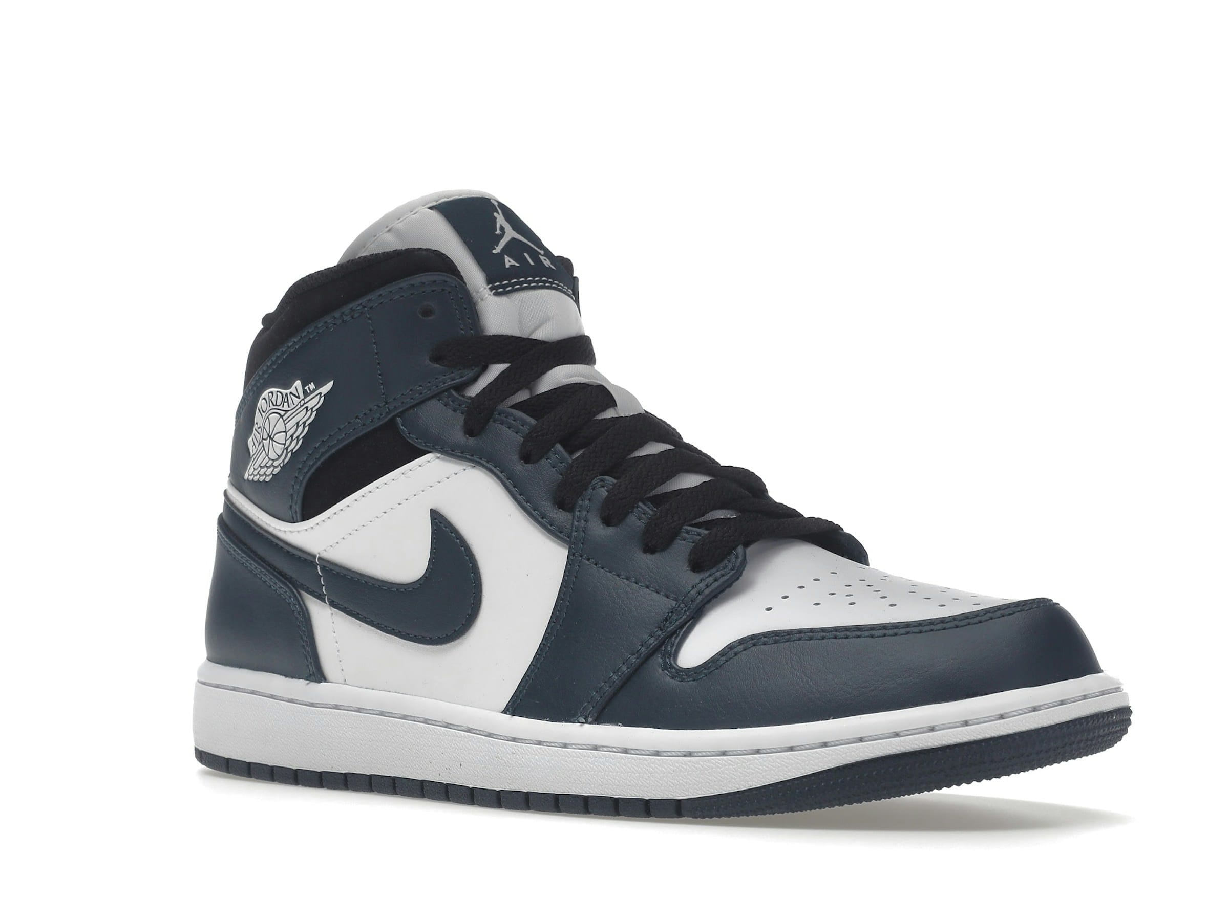 These Jordan 1 Mids feature iconic branding elements including a Jordan Wings logo at the ankle and a Jumpman woven label on the tongue, showcasing the unmistakable quality and heritage of the Jordan line. Released in 2022, the Armory Navy colorway quickly became a favorite among sneaker enthusiasts for its timeless appeal and comfortable fit. The combination of classic design and premium materials makes these shoes a must-have addition to any sneaker collection.