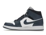 The Jordan 1 Mid Armory Navy (554724-411) is a stylish and versatile sneaker perfect for everyday wear. This clean design boasts a crisp white leather upper, accented by rich dark navy overlays and Swooshes that provide a sophisticated contrast. The black leather collars add a subtle yet impactful detail, completing the refined aesthetic.