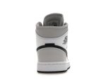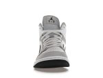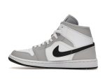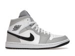 The combination of the crisp white leather, the muted Light Smoke Grey overlays, and the bold black Swooshes creates a sophisticated yet sporty aesthetic. This Jordan 1 Mid is a testament to the enduring appeal of the Jordan 1 silhouette, offering a comfortable and fashionable option for women who appreciate classic style with a contemporary twist. Whether you’re hitting the streets or heading to the gym, these sneakers are a reliable and stylish choice.