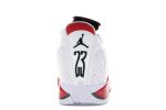 Step onto the court in style with the Jordan 14 Retro Rip Hamilton, a classic sneaker design that blends performance and aesthetic appeal. This iconic shoe features a crisp white leather upper, accented by bold hits of red and black for a vibrant look. The black Jordan Jumpman logo adds a signature touch, while the white midsole with matching red and black accents provides a clean contrast.