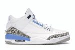 Originally a Player Exclusive for UNC athletes, this release features a premium white tumbled leather upper, providing a luxurious feel and timeless aesthetic. Accents of grey elephant print on the mudguards add a signature Jordan 3 touch, while pops of valor blue detailing complete the Carolina-inspired colour scheme. The recognisable Jumpman logo replaces the original embroidered UNC logo on the tongue, making these a must-have for both Jordan fans and sneaker enthusiasts.