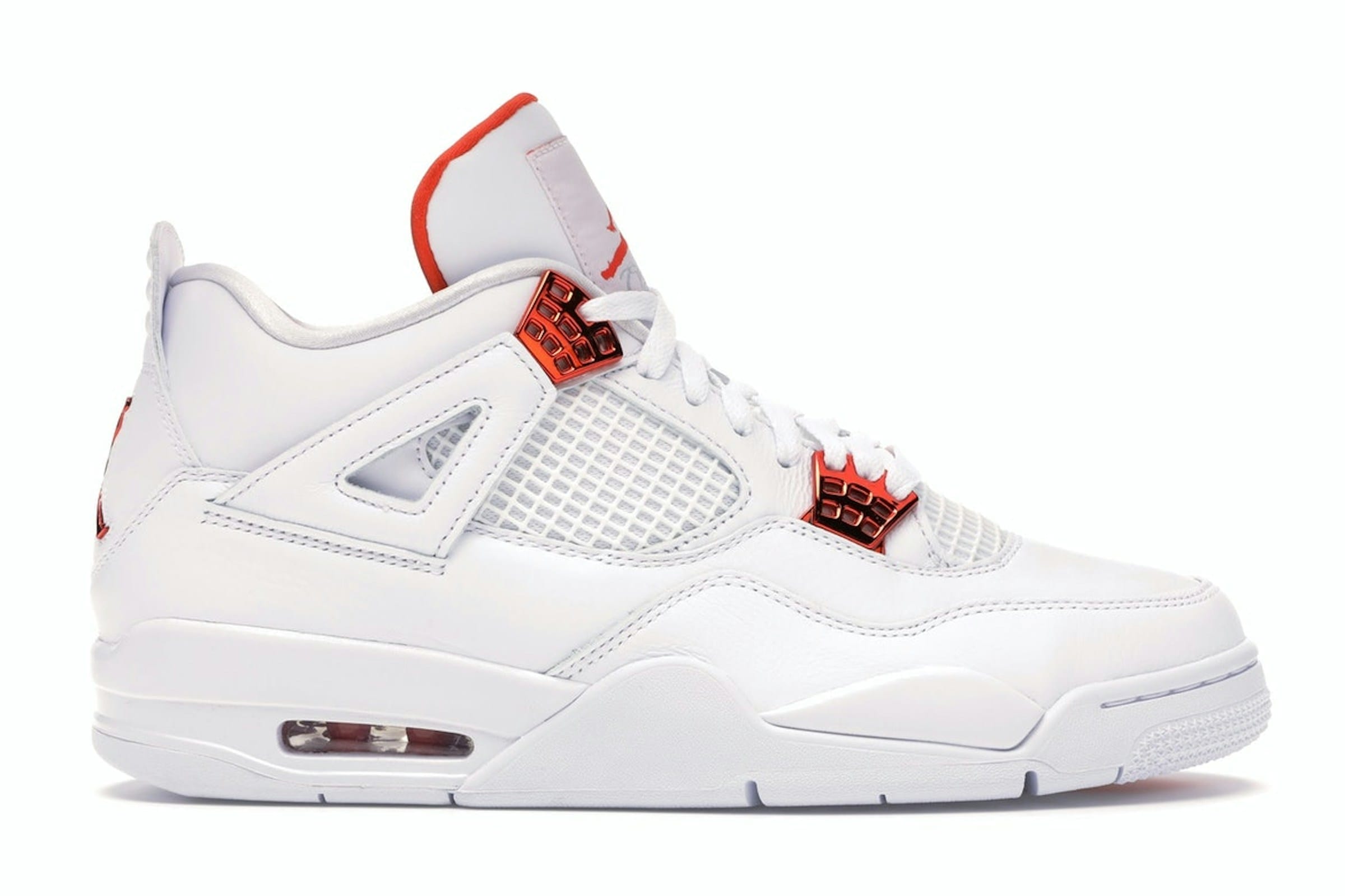 Originally released in May 2020, the Jordan 4 Retro Metallic Orange (CT8527-118) continues to be a sought-after piece of footwear, combining the timeless appeal of the Jordan 4 with the bold energy of metallic orange. The combination of white leather, metallic accents, and the iconic Jordan branding makes these sneakers a statement piece.