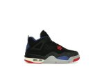 Jordan Brand IB4171-003 Grade School Air Jordan 4 Retro Rare Air sneakers. Black/Fire Red/Deep Royal Blue colorway. Premium leather, Air cushioning, iconic Jumpman logo. Limited edition.