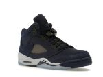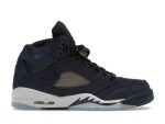 The Jordan 5 Retro Georgetown (GS) is a stylish and comfortable sneaker designed for kids. This special edition pays tribute to the Georgetown Hoyas with a striking color scheme of Midnight Navy, Black, and Football Gray. The upper boasts a mix of premium materials including cracked suede, textile, and TPU, offering both durability and a unique texture.