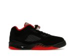 This Grade School version of the Jordan 5 Retro Low offers a smaller size perfect for growing feet while maintaining the iconic design and quality expected from the Jordan Brand. The combination of black, gym red, and metallic accents creates a timeless look that will remain stylish for years to come.