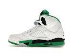 The Jordan 5 Retro Lucky Green boasts a premium build with a combination of leather and synthetic materials, ensuring both comfort and durability. The mesh quarter panels enhance breathability, while the smooth leather overlays provide a luxurious feel. This iconic sneaker is a must-have for any sneakerhead.