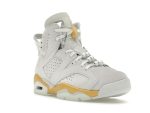The Jordan 6 Retro Craft boasts premium materials and impeccable craftsmanship. The luxurious smooth leather upper offers both durability and a sleek, refined finish. Metallic gold accents add a touch of glamour, perfectly complementing the subtle glacier blue details. This exquisite colour combination creates a striking and memorable look that’s perfect for both everyday wear and special occasions.
