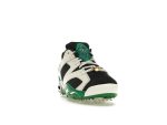 Celebrating the year the PGA lifted its ban on non-white golfers (1961), this shoe pays homage to a pivotal moment in golf history. The design features a sophisticated colorway of white, malachite green, black, and metallic gold, reflecting both classic elegance and modern flair. The water-resistant synthetic black leather upper provides superior durability and protection, while the off-white leather overlays add a touch of refined contrast.